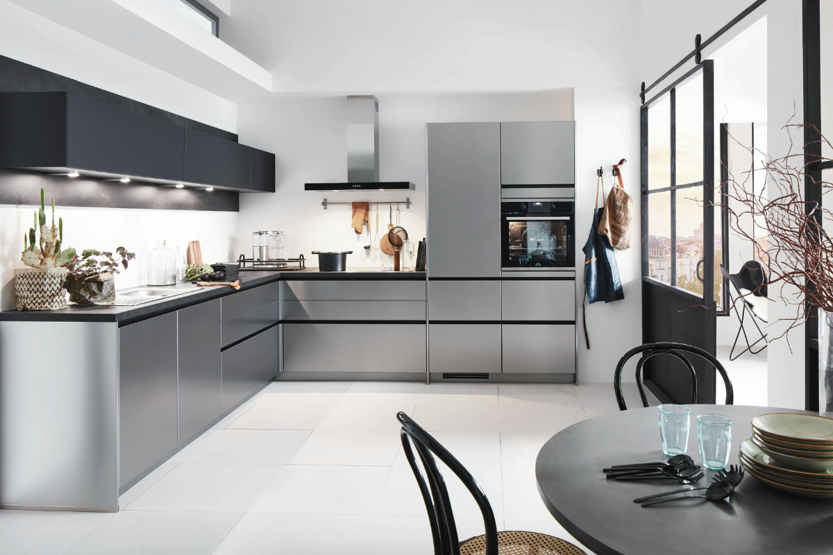 - Material and texture combinations were selected to add depth and a contemporary kitchen character.